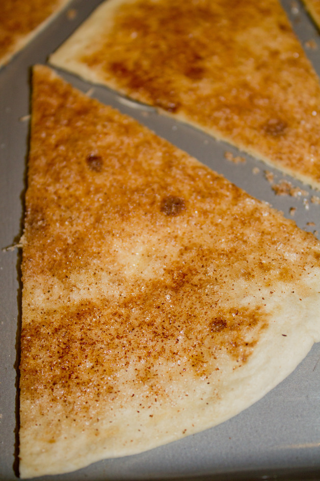 2. Potřeme jednu stranu tortilly změklým máslem, posypeme cukrem a skořicí. Tortillu rozřežeme na dílky (trojúhelníčky) a pokládáme na připravený plech. 3. Pečeme v předehřáté troubě 8-10minut, necháme zchladnout nejméně 15 minut. Tortilly podáváme s ovocnou salsou nejlépe v den přípravy. Ovocná salsa později pustí hodně šťávy. Dobrou chuť! |